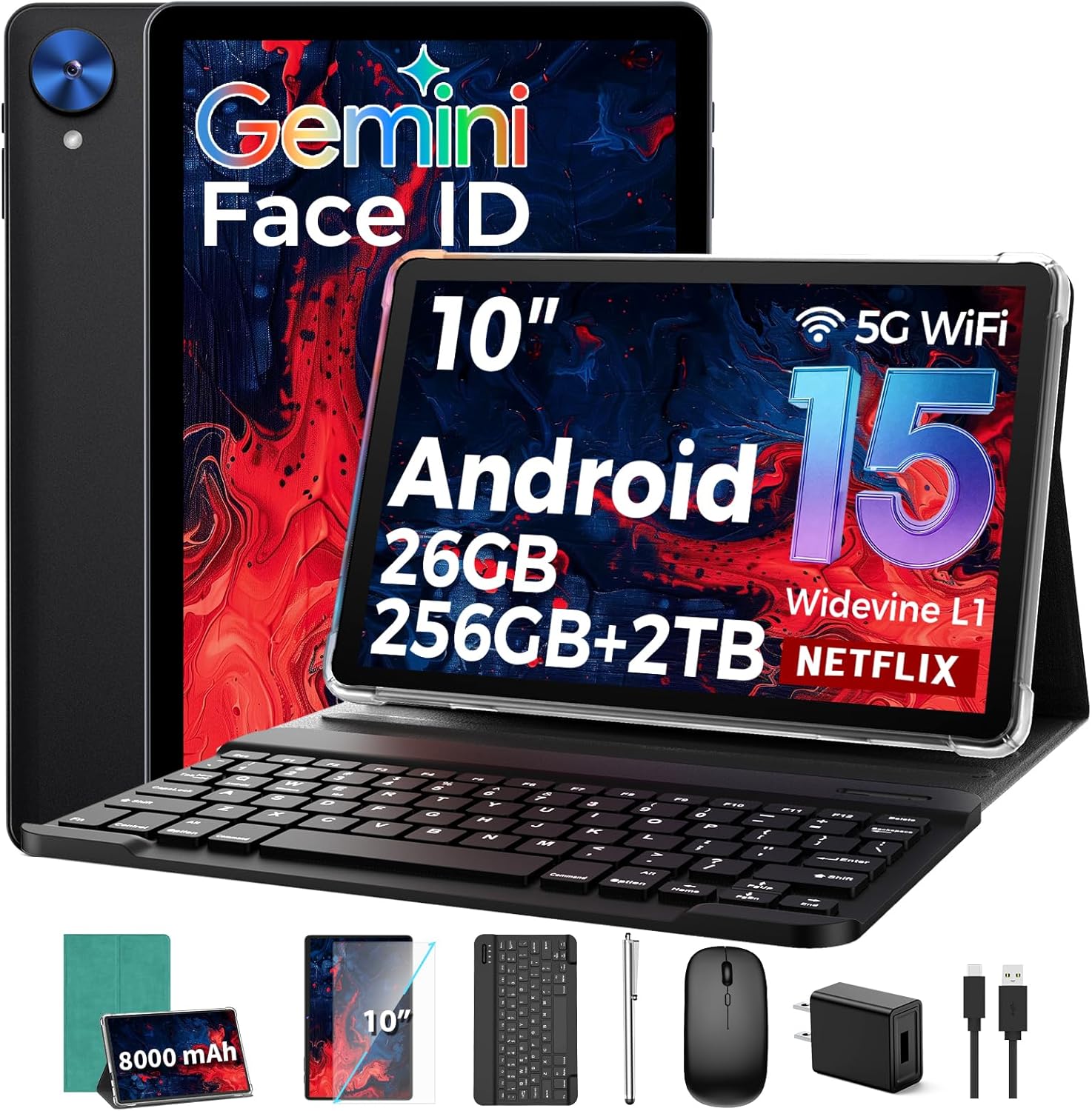 | BuiltIn Media | 10 inch tablet, Keyboard, Mouse, protective black case, stylus |