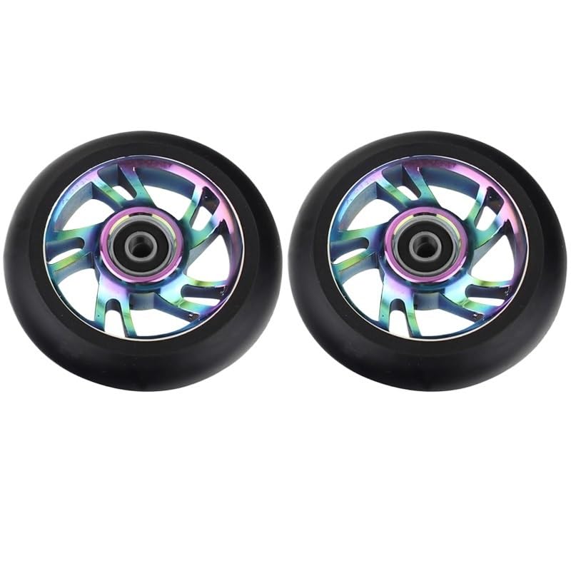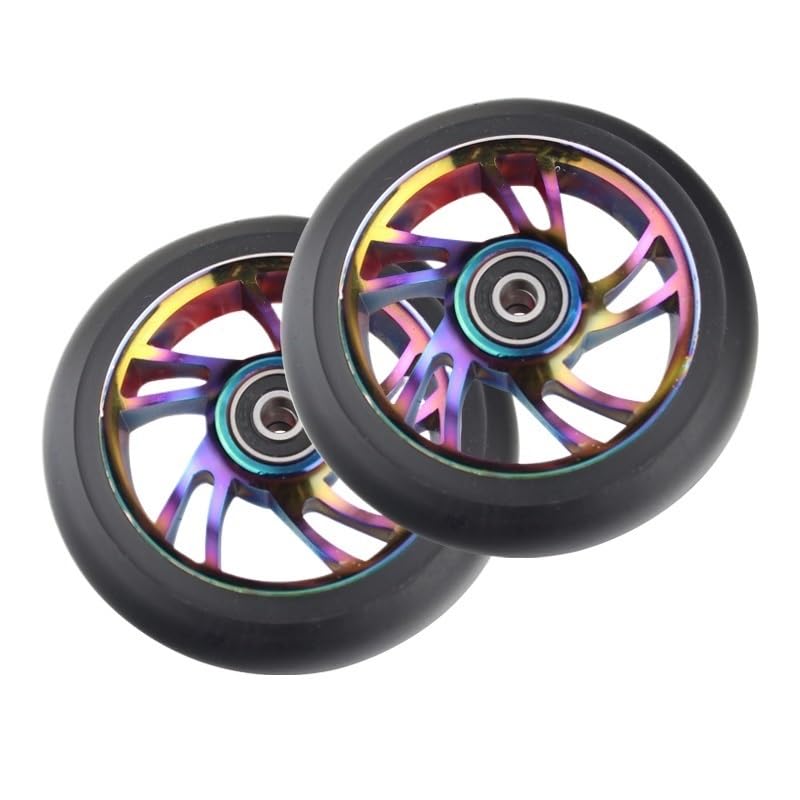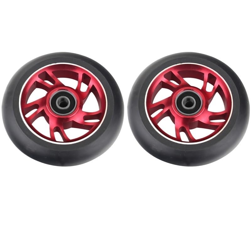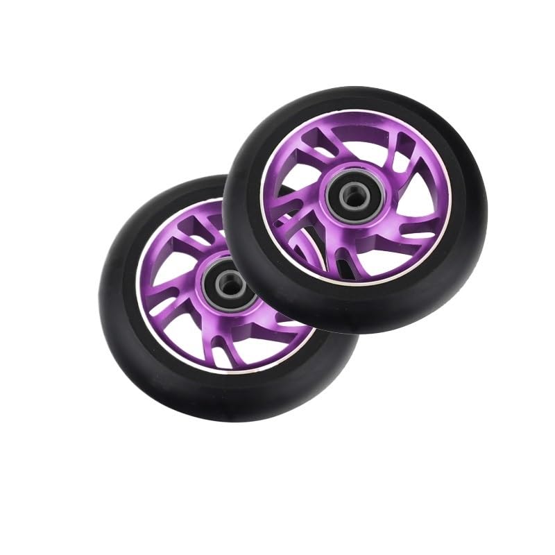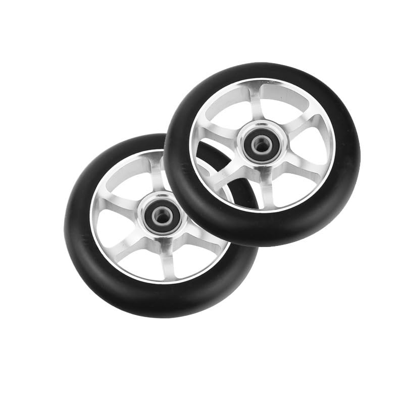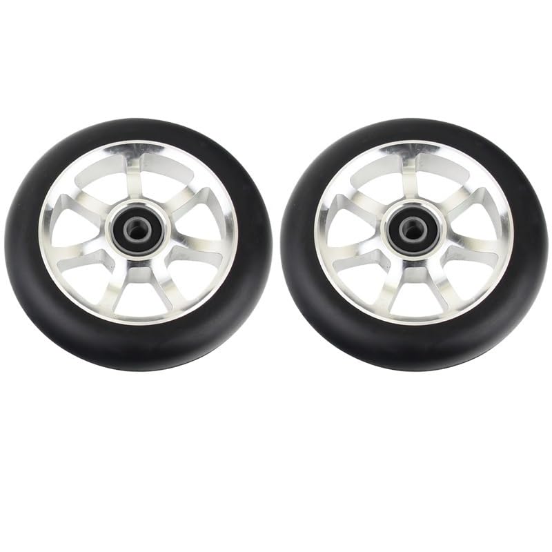 Needle-Bearing2pcs 100mm Skateboard Wheel Replacement with Bearings Aluminum Wear Resistant PU Stunt Scooter Parts Scooter AccessoriesColor: black, silver, , orange, red, purple, green, colorfulDimensions: 100 mm (3.9 in) diameter, 24 mm (0.94 in) widthCore: 6063T6 AluminumPU: High resilience polyurethaneBearing: ABEC-9Hardness: 88A PolyurethaneToughness: 85%Packing: 2 wheelsNet weight: about 210g/wheel
