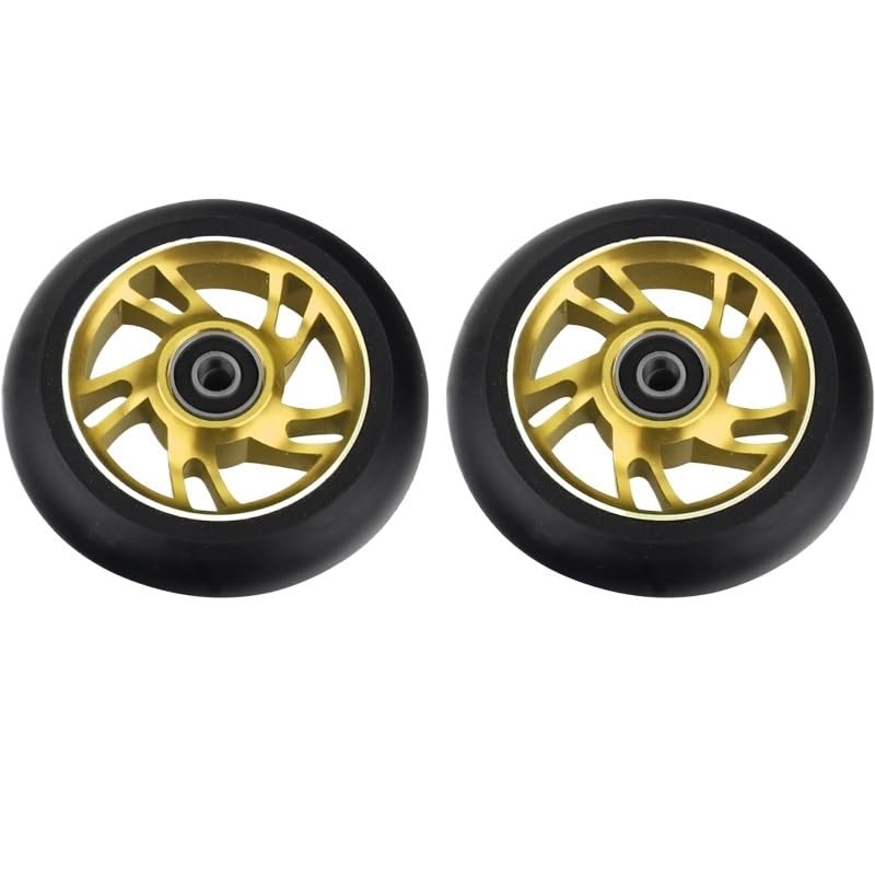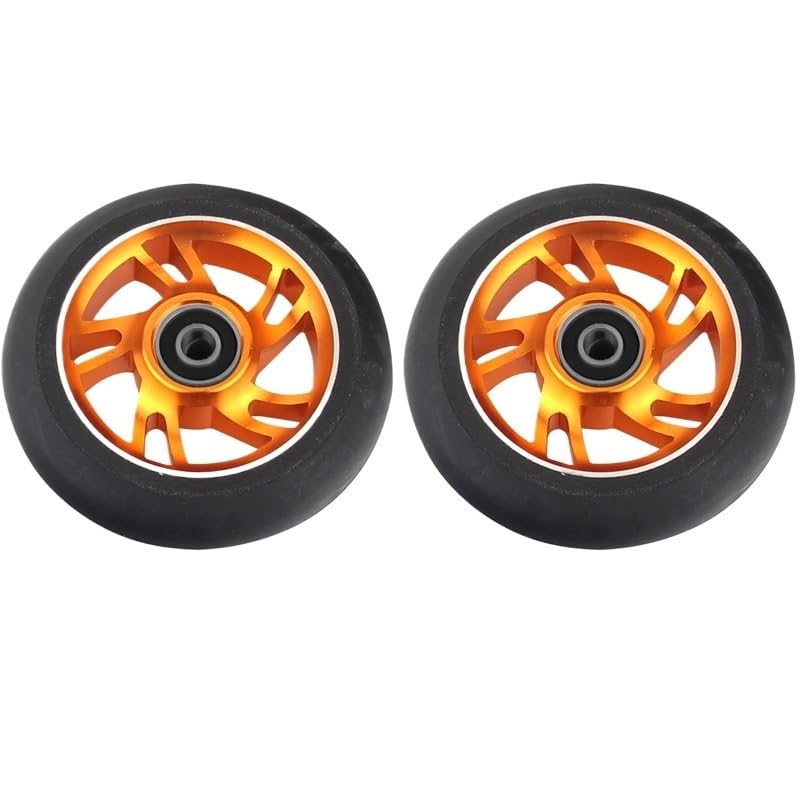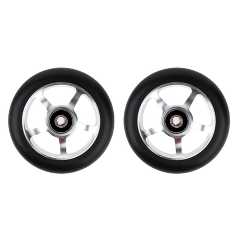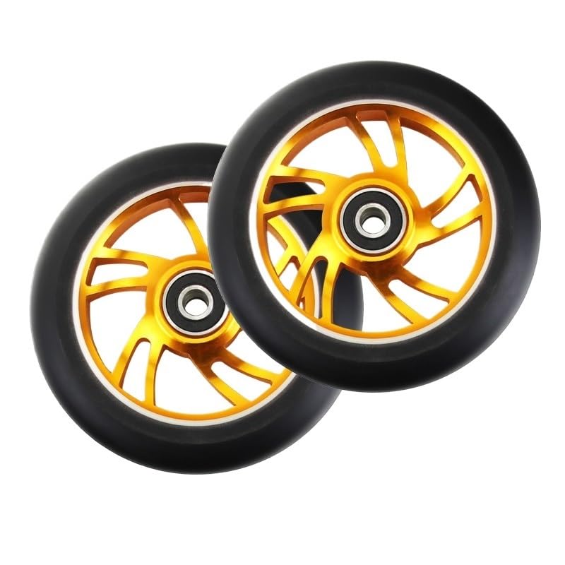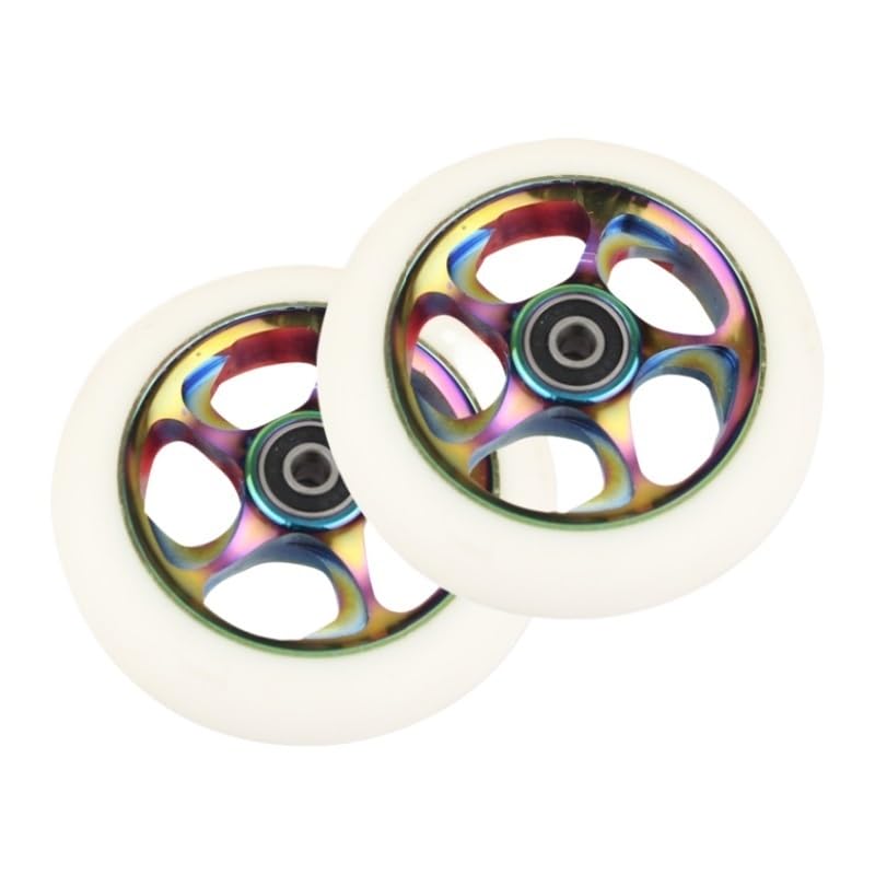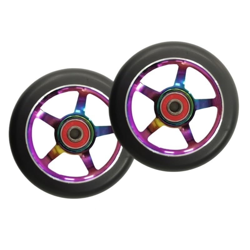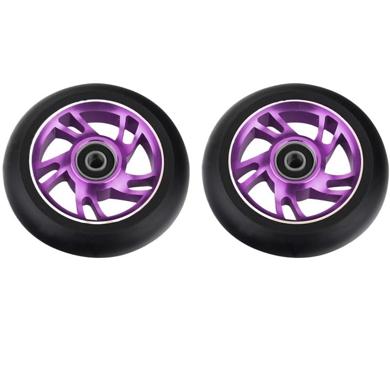 Needle-Bearing2pcs 100mm Skateboard Wheel Replacement with Bearings Aluminum Wear Resistant PU Stunt Scooter Parts Scooter AccessoriesColor: black, silver, , orange, red, purple, green, colorfulDimensions: 100 mm (3.9 in) diameter, 24 mm (0.94 in) widthCore: 6063T6 AluminumPU: High resilience polyurethaneBearing: ABEC-9Hardness: 88A PolyurethaneToughness: 85%Packing: 2 wheelsNet weight: about 210g/wheel