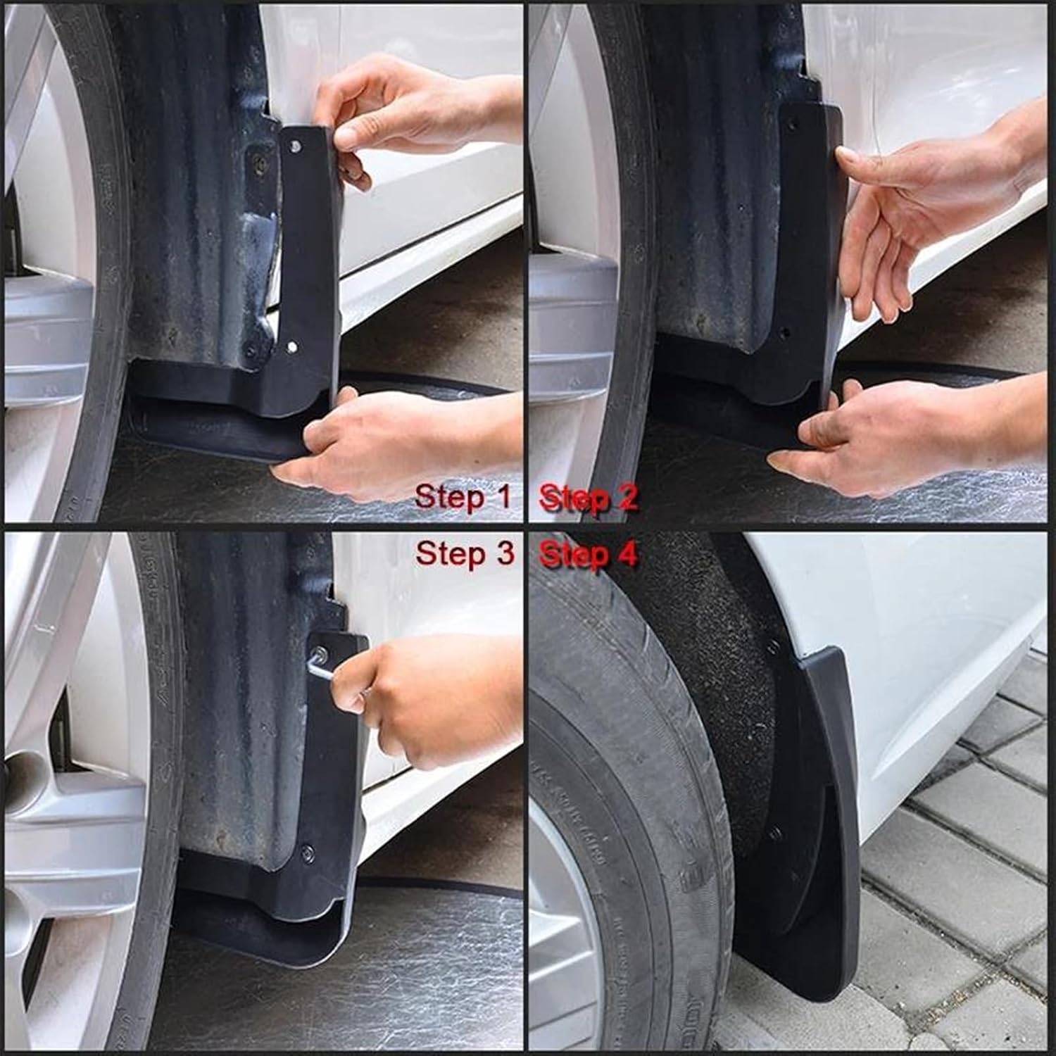 Specification:Product Name: Car Mud FlapsItem Type: MudguardsMaterial: ABS PlasticColor: BlackQuantity: 4pcs/setPackage included:4 x Mud Flaps (2 X Front + 2 X Rear)a Bag Of Screw FixingsFeatures:100% brand new and high qualityEasy Installation, Direct FitJust fix it directly with screwsSimple and Fashion Design, The Car Looks BeautifulInjection-molded thermoplastic provides superior strength and durability.Precise fit to the wheel, protecting the body from dirt.