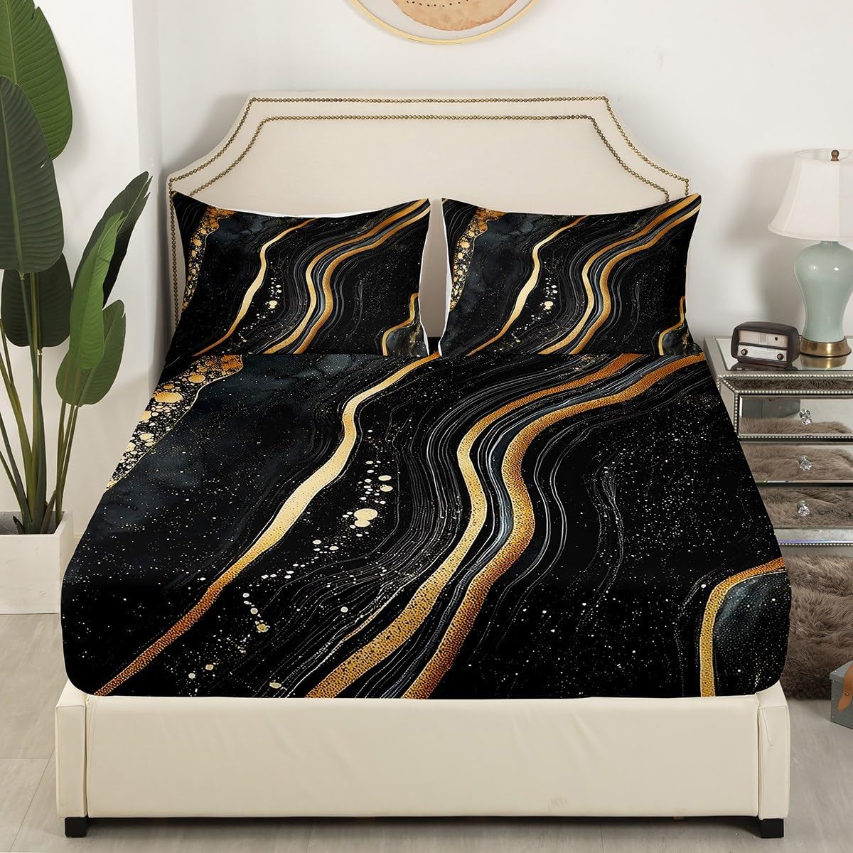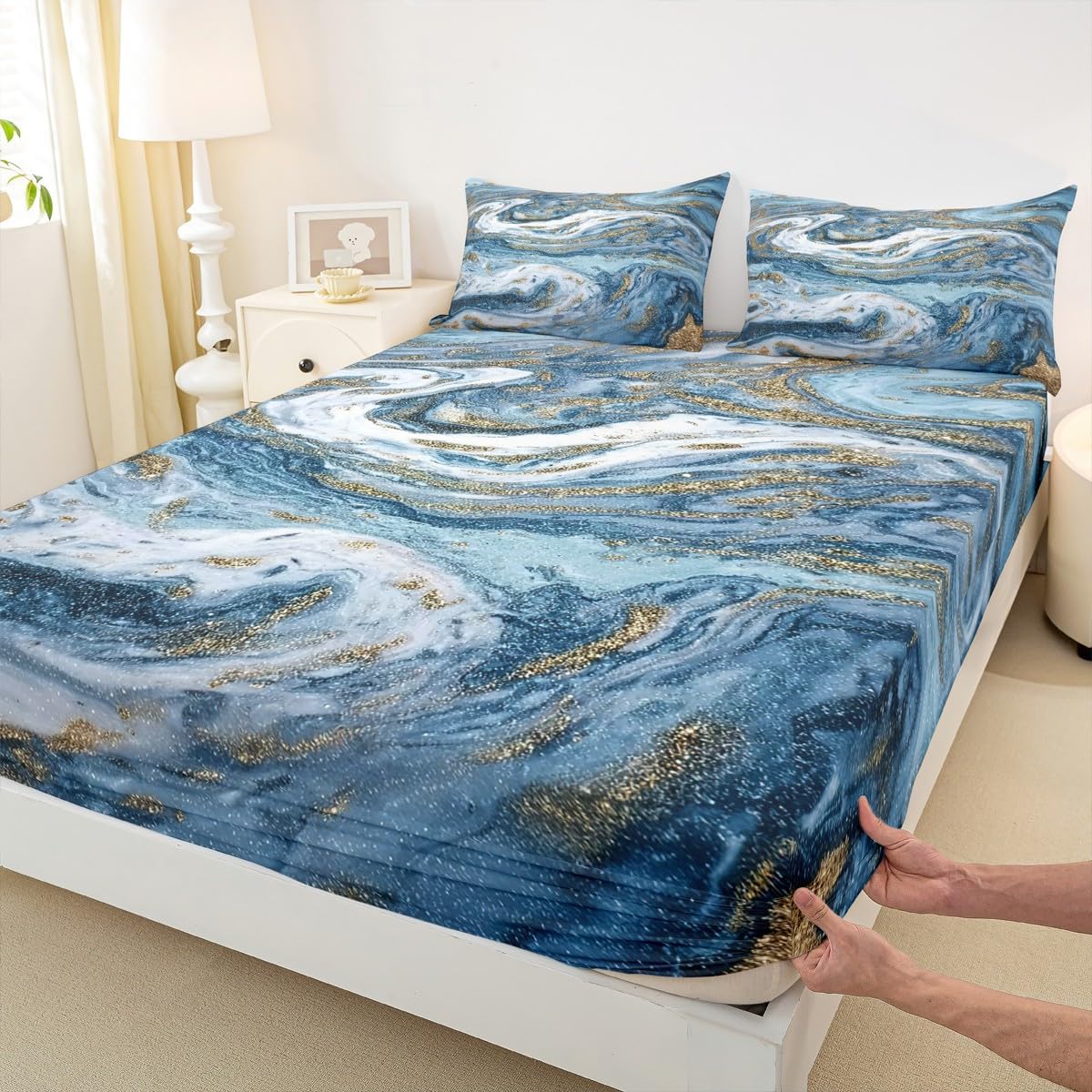 The Modern Fitted Sheet Set Pattern Bedding Set,Simply Decorating Your Rooms You Want,Bringing You Fresh Feel for Year Round Use. Made From Polyester Microfiber Size Information: Twin Size: 2Pcs Fitted Sheet Set:1 Fitted Sheet 39"Wx75"Lx16"H(99x190x41cm), 1 Pillowcase 20"x30"(51X75cm). Full Size: 3Pcs Fitted Sheet Set:1 Fitted Sheet 54"Wx75"Lx16"H(137x191x41cm), 2 Pillowcase 20"x30"(51x75cm). Queen Size: 3Pcs Fitted Sheet Set:1 Fitted Sheet 60"Wx80"Lx16"H(152x203x41cm), 2 Pillowcase 20"x30"(51x75cm). : Personalize Your Bedroom Vibrant prints and thoughtfully curated designs create a personalized bedroom retreat, supporting restful sleep in comfort With elasticity all around, this fitted sheet can firmly lock onto the mattress, making it suitable for various sleeping positions. Its all round package design ensures a smooth and flat surface. Coordinating envelope pillowcase that is easy to replace, saving time and effort, while maintaining the overall aesthetic appeal. : Washing Instructions Machine Wash Separately In Cold Water,Hang Dry,Do Not Bleach. : Occasion Ideal for bedroom, this ultra-soft fitted sheet provides exceptional comfort for everyone. A versatile essential for daily use, guest rooms, or as a spare set for the entire family.