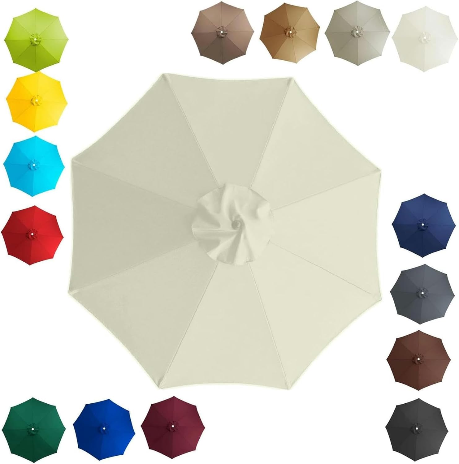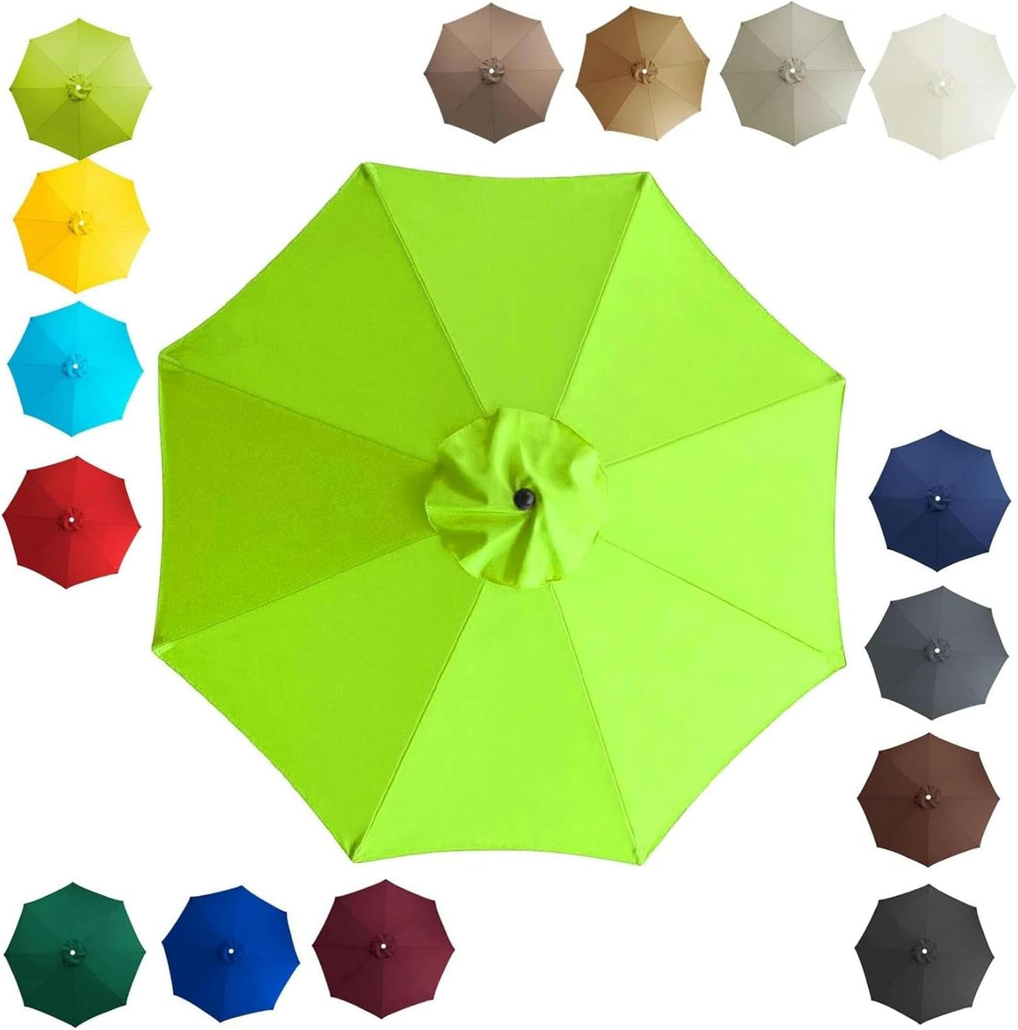 ☂ This is an umbrella cover that fits (2.0m)6.6ft, (2.7m)8.9ft, (3.0m)9.8ft, 6-rib or 8-rib patio umbrellas. This umbrella cover is designed to provide convenience and cost savings for most customers. If your parasol umbrella bone is intact and only the cover is worn out or damaged, purchg it will give your patio umbrella a new look.Reasons to choose our products are: our products have strong and durable fabric, fine workmanship and tight stitching. The material we use polyester fabric (fade resistant, UV 30+), suitable for long-term outdoor use. Having it will make your outdoor life more comfortable and pleasant.☂ Name:Sun Umbrella Replacement Canopy ☂ Replacement Canopy is applicable to: 6/8 rib Patio umbrella, Parasol Umbrella, Sun Umbrella, Garden Parasol Market Umbrella Canopy.☂ Fabric: High quality polyester fiber fabric, 95% UV protection☂ Canopy shape: circular.☂ Kind reminder:☂ Regarding color difference - due to differences in shooting environment, brightness, lighting, shooting equipment, and display, there may be slight differences between the image and the actual product. Please understand and refer to the actual product for accuracy.