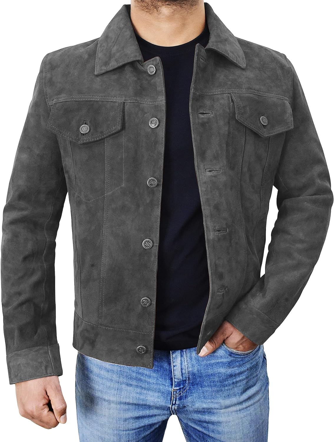 Brand: Trendy JacketMens Brown Suede Leather Jacket Cowboy Western Suede Coat Trucker Leather Jacket for Adult OuterwearMens Suede Leather Jacket is a made from Suede Leather. leather jacket is identified by button closure, Buttoned Cuffs, Viscose Inner Lining. Trucker Jacket is one of the trendy styles for spring layering although it could be perfect for all-season as they come in lightness, softness and the luxuriance durable fabrics.Unleash your inner cowboy with our Mens Suede Leather Jacket in brown, a timeless piece that seamlessly combines rugged Western aesthetics with contemporary style. This jacket is not just outerwear; it's an expression of your adventurous spirit and unparalleled taste in fashion. Order your Mens Suede Leather Jacket today and make a statement with a piece that captures the essence of timeless Western elegance.Suede Leather Jacket Key Features:Snap Tab Button Cuffs2 Flap on Chest, 2 Waist and 1 Inner PocketsSoft smooth surface with button closurePointed Shirt CollarViscose Inner LiningPremium StitchingColor: Black, Brown, Red, GreenCare and Cleaning Tips:Care for your jacket effortlessly with simple instructions. Keep it dry, avoid wearing it in the rain, and store it on a sturdy hanger in your closet. This mens jacket is low-maintenance and doesn't require frequent washing.For minor cleaning, wipe it with a damp cloth, but avoid pouring water directly on stains to prevent leather damage. For thorough cleaning, trust the professionals with dry cleaning. Preserve the quality and longevity of your jacket by avoiding exposure to high heat.IMPORTANT NOTE TO SELECT CORRECT SIZE:Must check our size chart (2XS To 4XL)in images to avoid any confusions as we have proper Quality checking department that makes sure buyer gets exactly what it orders.