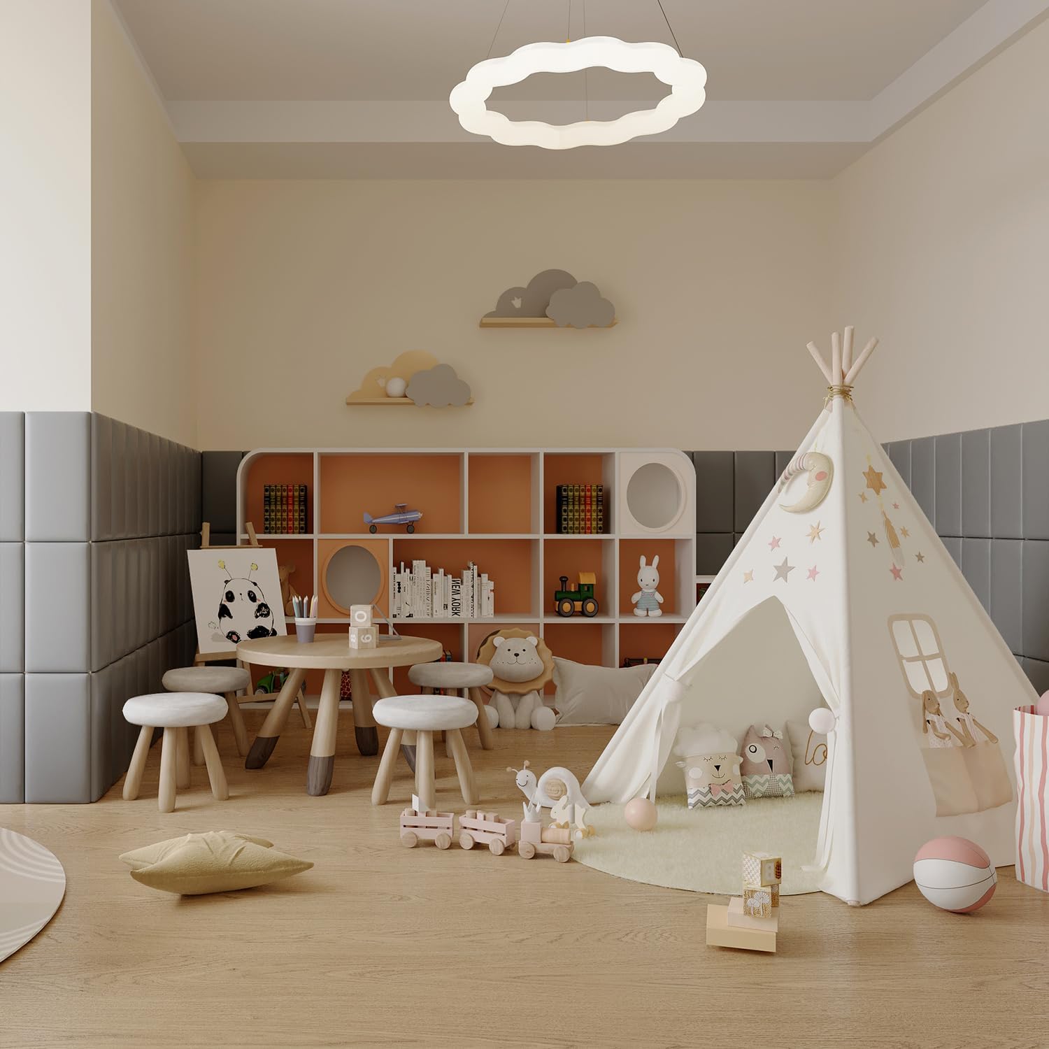 • The overall thickness of the 3D anti-collision wall panel is 1.3 inches, which has good anti-collision ability and effectively prevents children from being hit. At the same time, it also has a certain sound insulation effect.