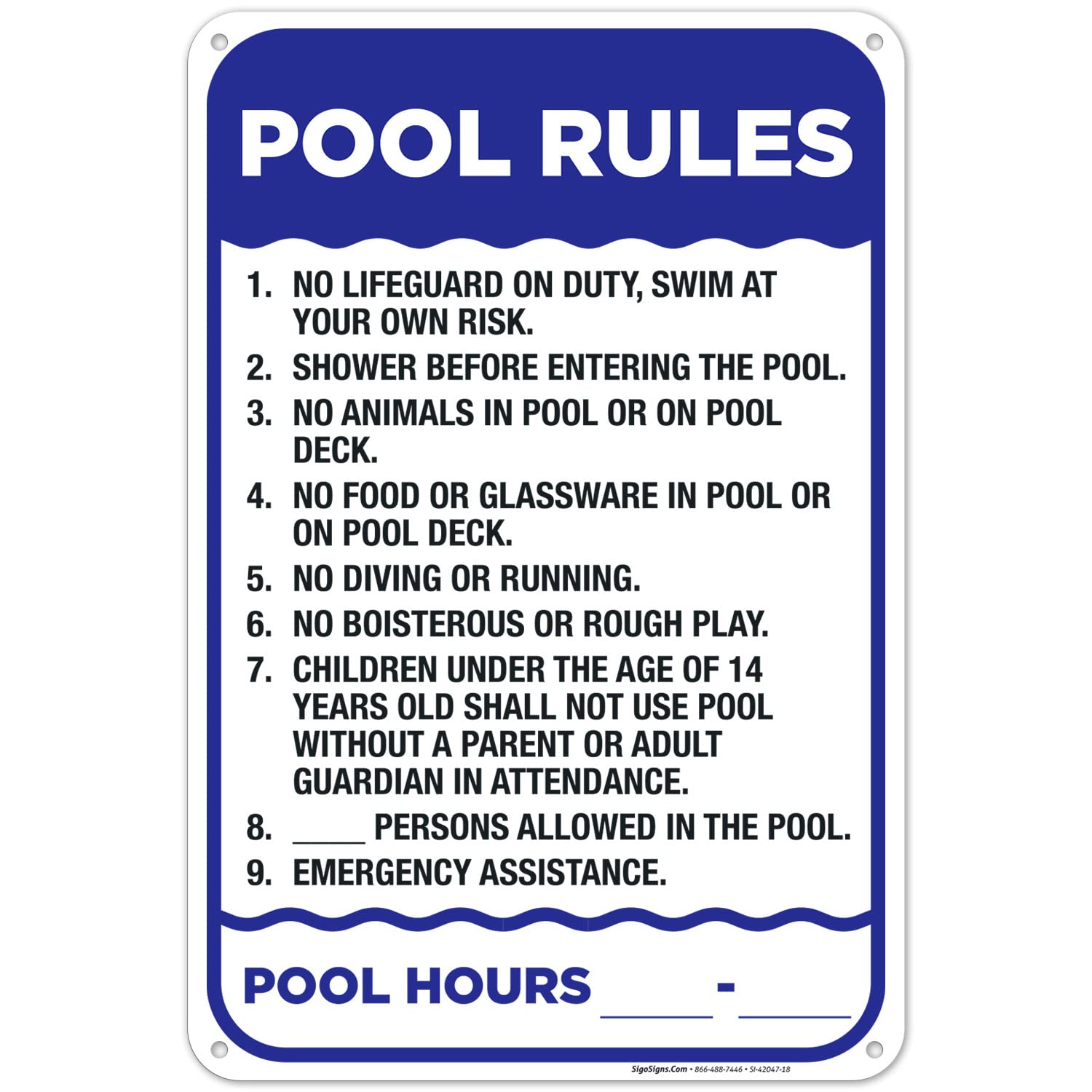 Sigo Signs - Pool Rules Sign, 18x24 Inches, Rust Free .063 Aluminum, Fade Resistant, Easy Mounting, Indoor/Outdoor Use, Made in USA by Sigo Signs